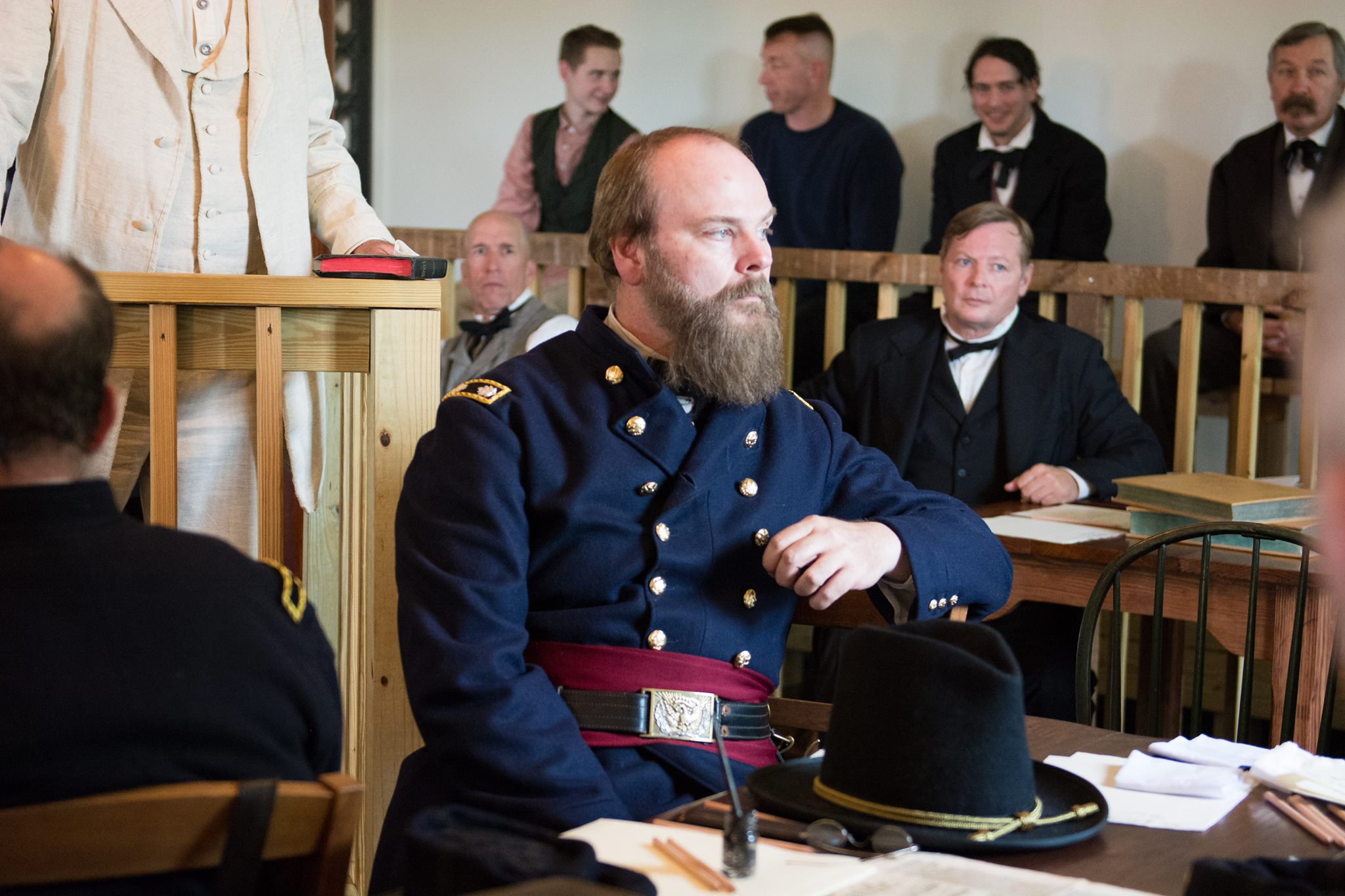 The reenactment was based on the 5,017 page transcript of the trial and lasted about two hours long with one twenty minute intermission. It also featured a cast of forty-one members and twenty-one testifying witnesses, all of whom wore period correct attire. All props were supplied from the movie, “The Conspirator,” which follows a similar plot.